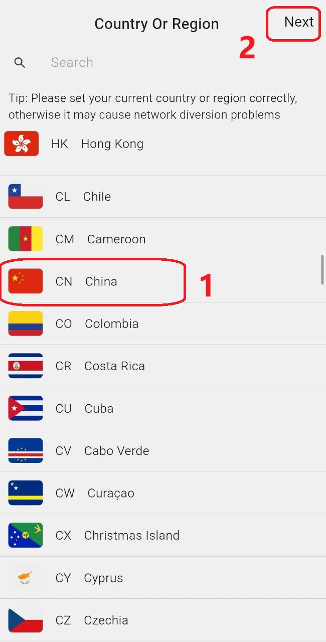 (3)Select your region, and Karing will set the default routing based on your selection.