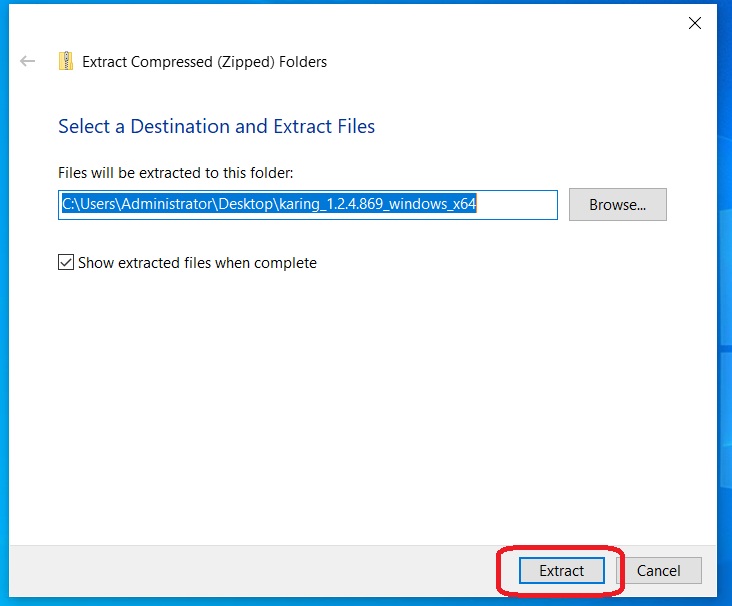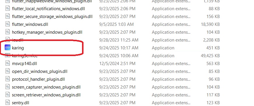 E. After decompression, please locate the executable file named "karing" in the document directory and click to run it.